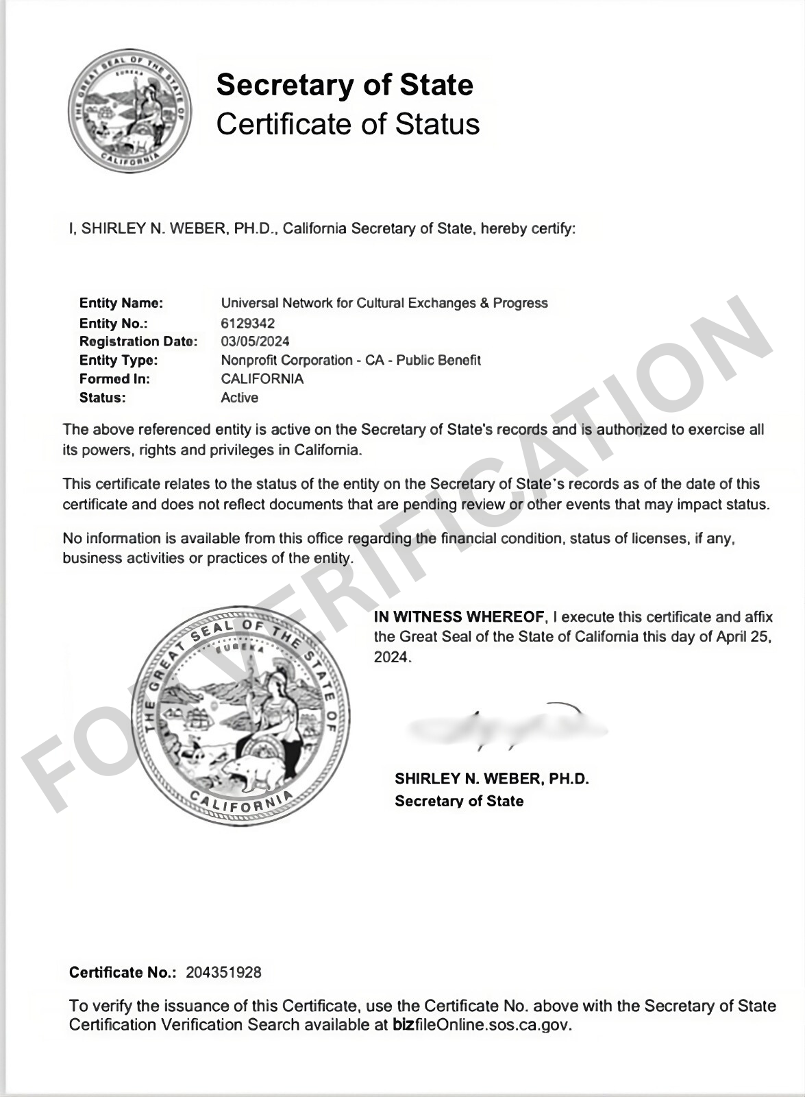Universal Network for Cultural Exchanges & Progress (UNCEP) - Entity No. 6129342, is a distinguished Nonprofit Public Benefit Corporation, committed to advancing education, cultural advancement, and international collaboration. UNCEP is legally incorporated under the laws of the State of California, United States of America.